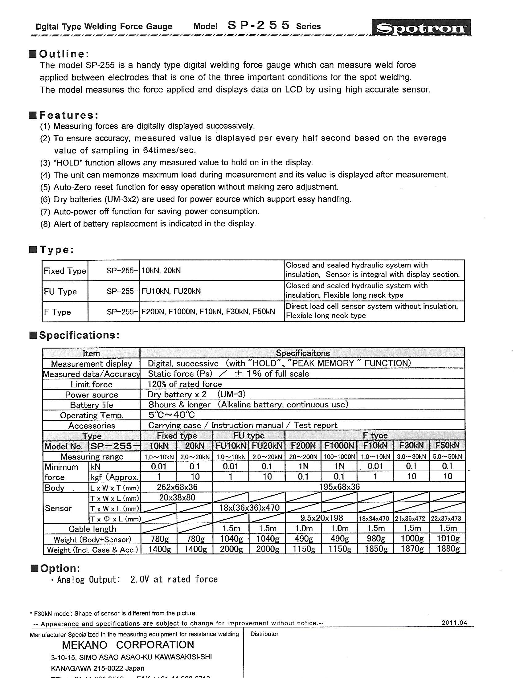 Spotron SP-255 Series - Digital Weld Force Gauge