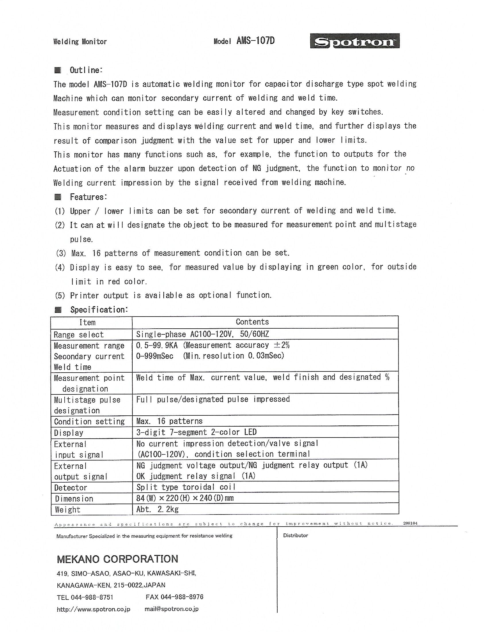 Spotron Welding Monitor (AMS-107D)